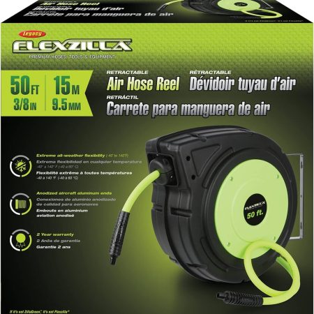 Flexzilla Retractable Enclosed Plastic Air Hose Reel, 3/8 in. x 50 ft., Heavy Duty, Lightweight, Hybrid, ZillaGreen - L8250FZ